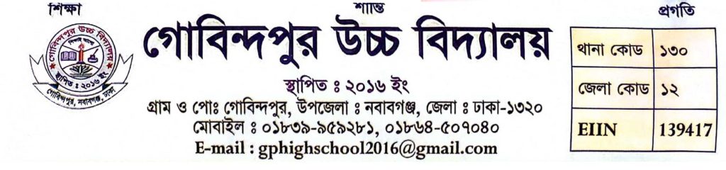 “গোবিন্দপুর উচ্চ বিদ্যালয় একটি স্বনামধন্য শিক্ষা প্রতিষ্ঠান। আমরা শিক্ষার্থীদের মাঝে দেশপ্রেম, নৈতিকতা ও জ্ঞানার্জনের আগ্রহ জাগিয়ে তুলতে চেষ্টা করি। আধুনিক প্রযুক্তিনির্ভর শিক্ষা ব্যবস্থার সঙ্গে তাল মিলিয়ে আমরা শিক্ষার্থীদের মানসিক, সামাজিক এবং বুদ্ধিবৃত্তিক উন্নয়ন নিশ্চিত করতে বদ্ধপরিকর। বিদ্যালয়ের সকল শিক্ষক, অভিভাবক ও শিক্ষার্থীদের আন্তরিক ধন্যবাদ জানাই।”
